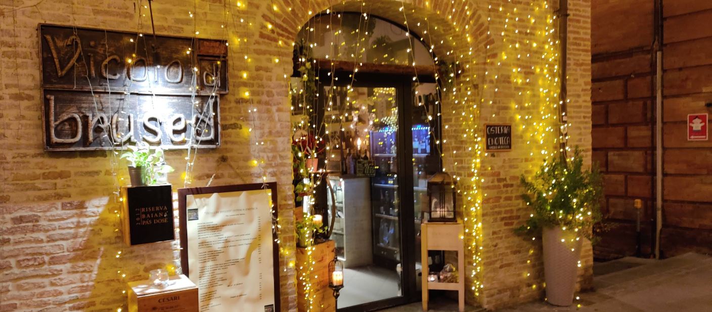 Nel fascino senza tempo di Santarcangelo di Romagna, tra i vicoli lastricati del centro storico, si apre una porta sul gusto autentico: Vicolo di Brused. Questa enoteca e osteria racconta la tradizione romagnola con uno stile unico, accogliente e conviviale, dove ogni dettaglio – dai tavoli rustici alle luci calde – è pensato per far sentire a casa chiunque varchi la soglia.